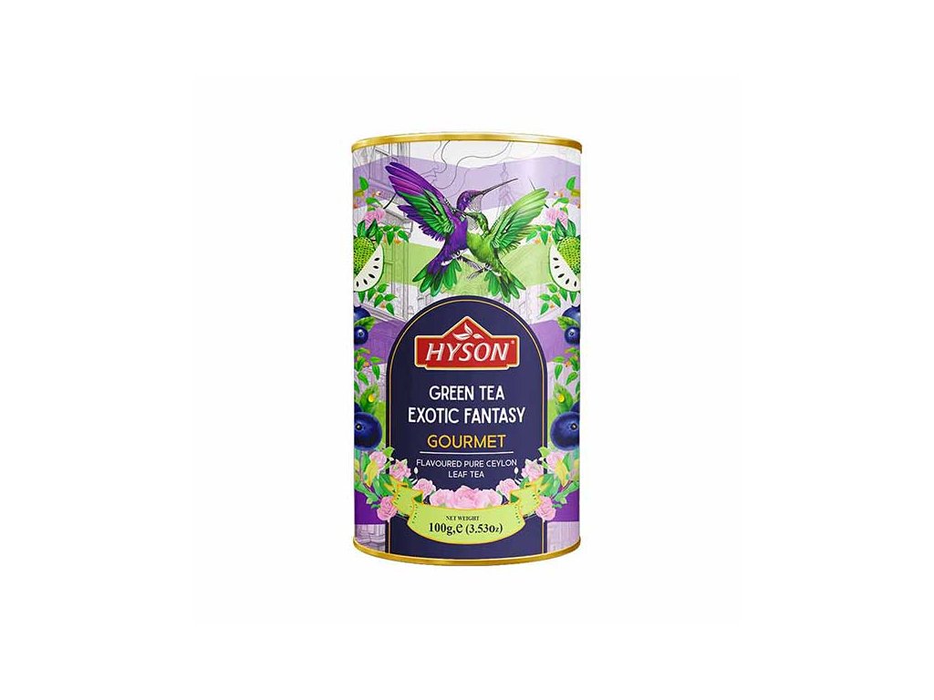 Příchuť borůvky dokáže ve společnosti gravioly se zeleným čajem neskutečné divy. Už jen otevření papírového tubusu Hyson Exotic Fantasy provoní celé okolí okouzlující vůní, a jeho chuť je ještě lepší! Firma Hyson Teas (Pvt) Ltd., je specializovaná čajová společnost zabývající se vývozem nejkvalitnějšího ceylonského čaje. Je držitelem certifikací HALAL a KOSHER a evropského, japonského i amerického značení pro ekologickou produkci. Čaje Hyson jsou tím pravým pro náročné spotřebitele, kteří ocení jak čisté, tak ochucené černé, zelené i bylinné čaje, a také čajové směsi obohacené o kousky pečlivě vybíraného ovoce, okvětních lístků či dokonce koření.