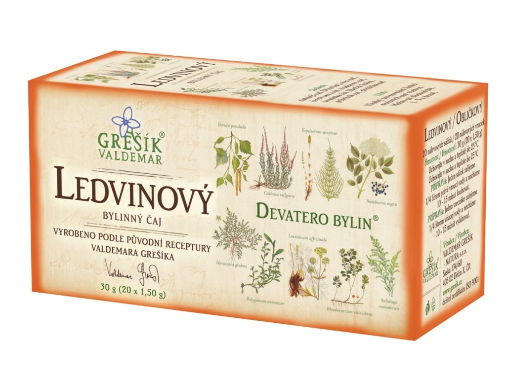 Složení: zlatobýl nať, bříza list, vřes nať, černý bez květ, truskavec nať, brusinka list, libeček kořen, průtržník nať, přeslička nať